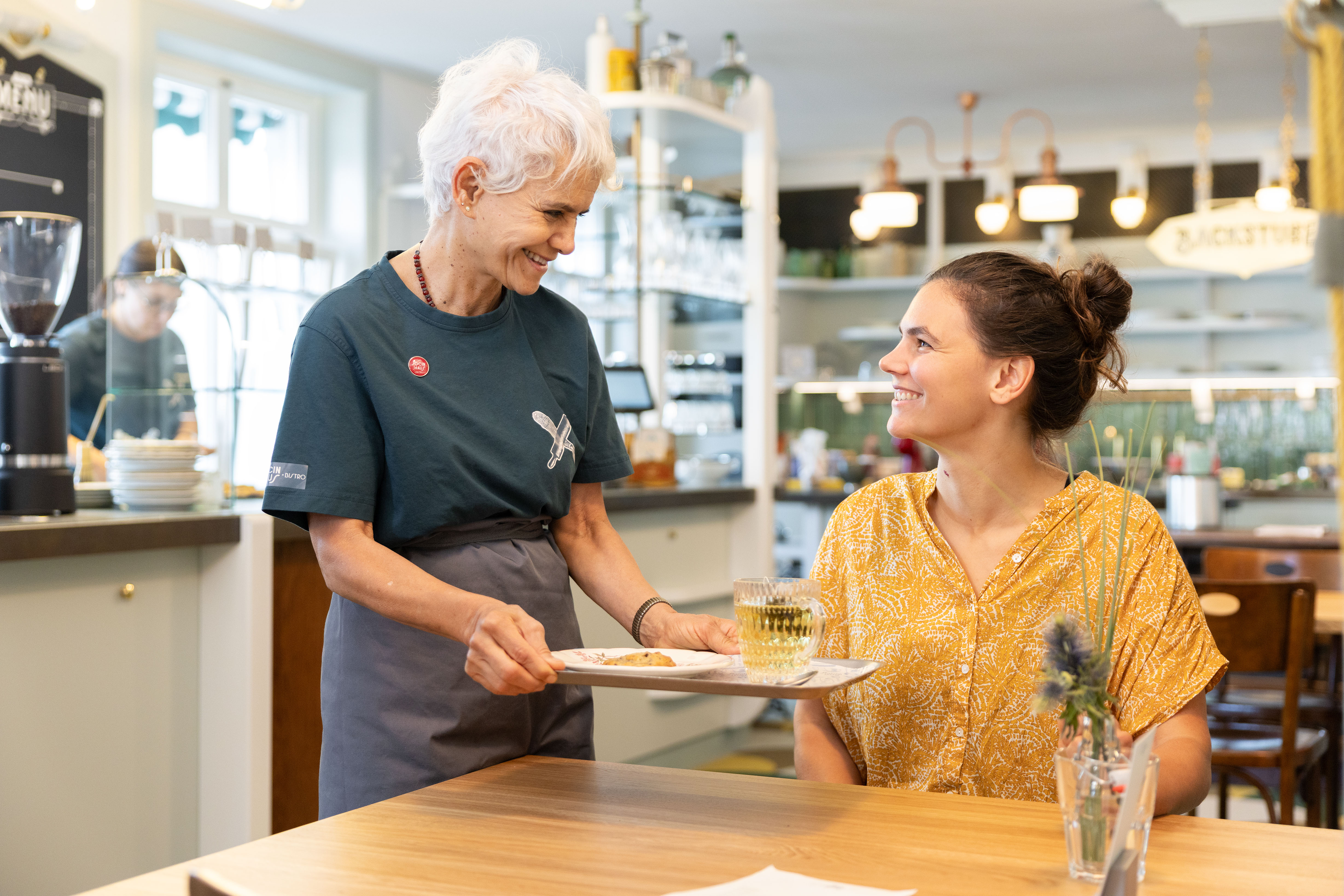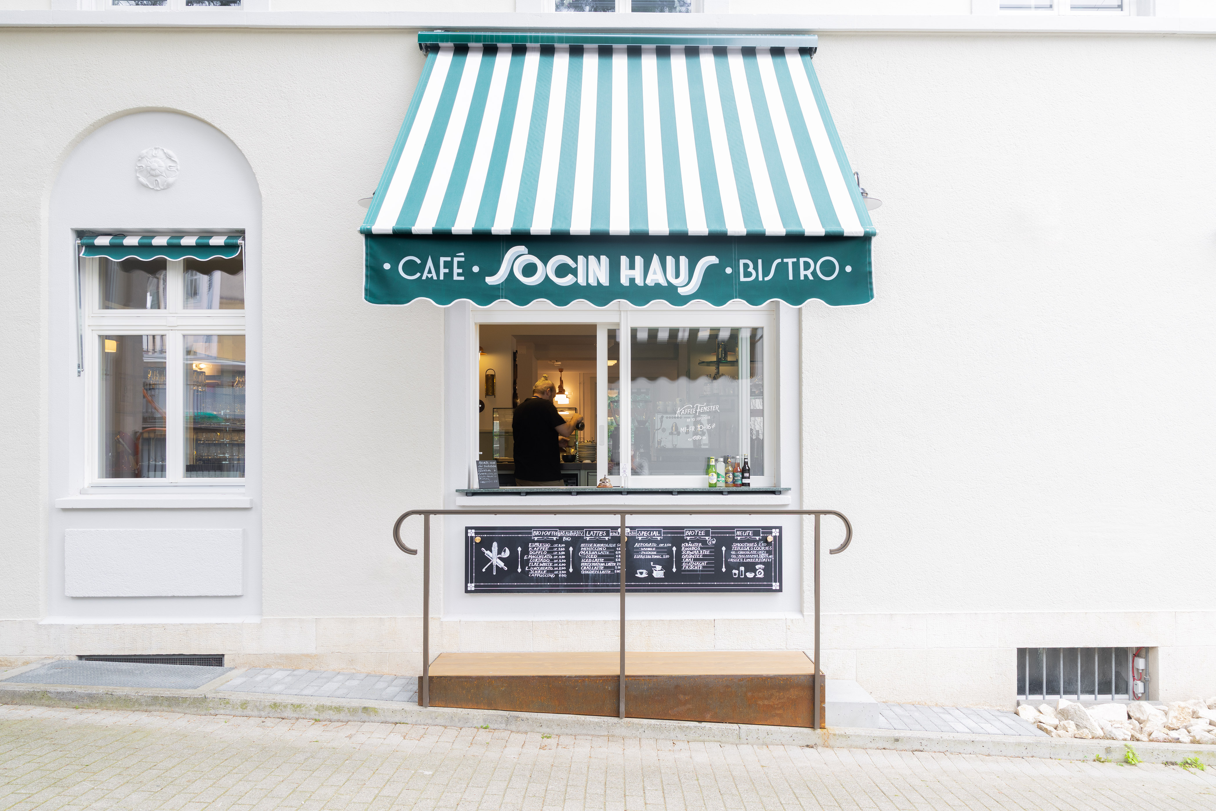 Ein zentrales Element ist das Kaffeefenster, an dem Gäste auch in Eile mit Charme und Qualität bedient werden.